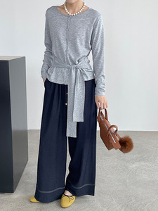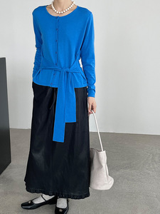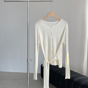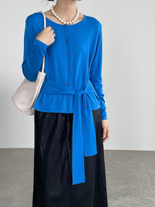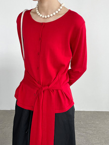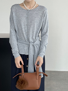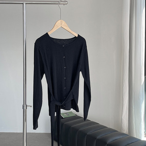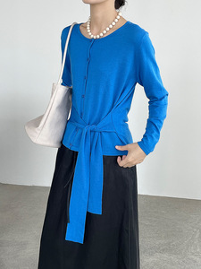 滔川 2025秋韩系百搭绑带气质开衫女单排扣针织上衣YL583