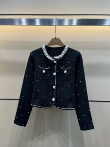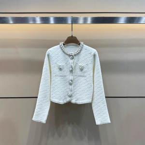25早秋新款法式小香风重工钉钻圆领气质短款开衫