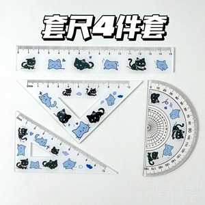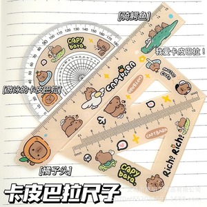 卡通卡皮巴拉亚克力尺子4件套刻度绘图测量尺卡直尺三角学生文具