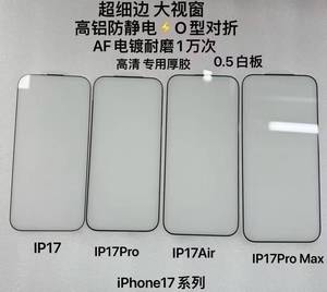 适用iPhone17Promax电镀高铝钢化膜苹果17Air防尘一体ESD保护贴膜