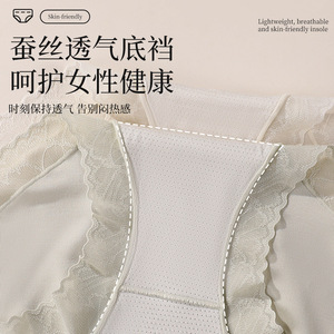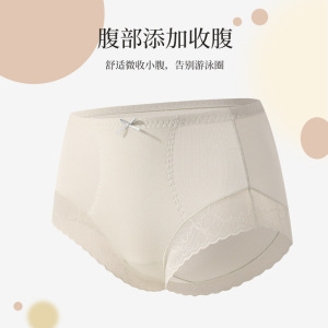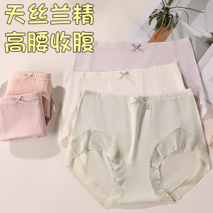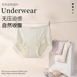 高腰收腹蕾丝内裤女款无痕透气桑蚕丝裆抗菌轻塑打底三角裤大码夏