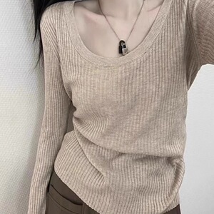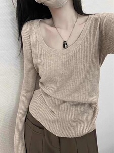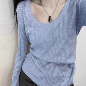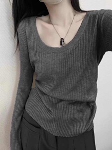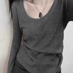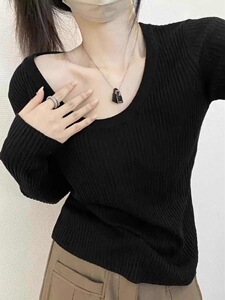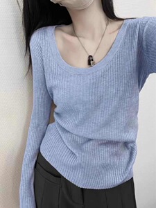 秋装正肩低领打底长袖早春秋季高级修身毛衣显瘦针织衫纯欲风上衣