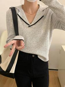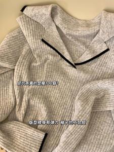 撞色西装领长袖针织衫女2025年早秋新款棕色减龄学院风软糯打底衫