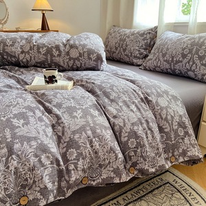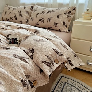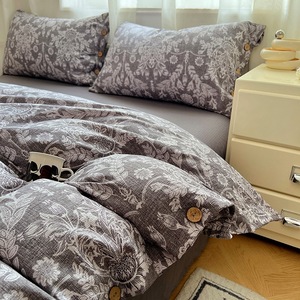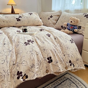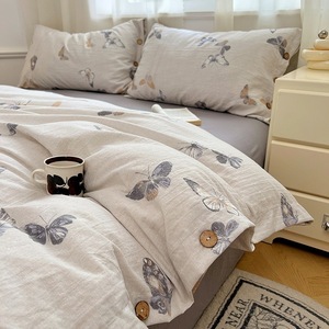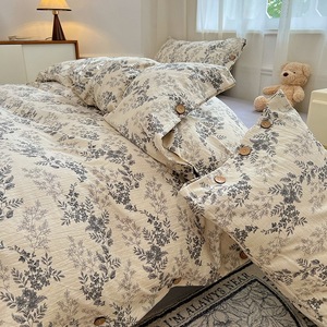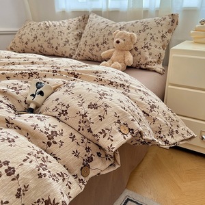 轻奢复古风秋冬A类母婴四件套高克重亚麻三件套床单被套床上用品4