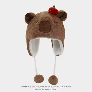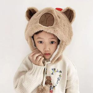 儿童帽子冬季可爱呆萌卡皮巴拉毛绒护耳帽加厚防寒雷锋帽女高级感