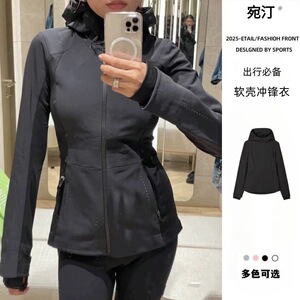 修身软壳冲锋衣女春夏新款连帽收腰瑜伽服速干透气防晒服外套
