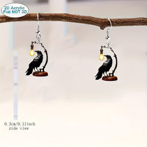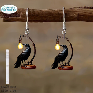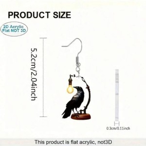 跨境热卖创意台灯乌鸦耳环2D亚克力个性小众高级感乌鸦耳饰饰品