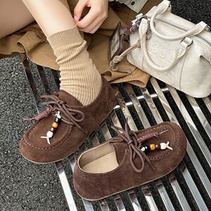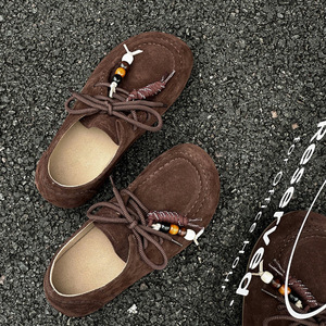 真皮厚底袋鼠勃肯鞋女2025秋新款舒适透气休闲系带豆豆鞋浅口单鞋