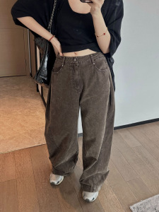 老钱风松弛感高级复古做旧水洗炒色直筒阔腿牛仔裤秋冬时尚女裤