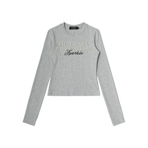 浅耀女装|美式复古珍珠绣短款长袖t恤女秋季潮牌显瘦辣妹正肩上衣