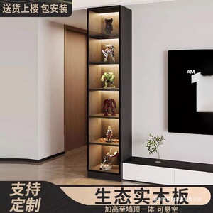 实木电视柜侧边柜酒柜立柜玻璃门客厅储物展示书柜窄柜手办柜
