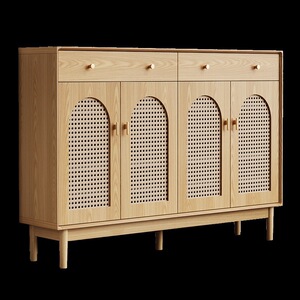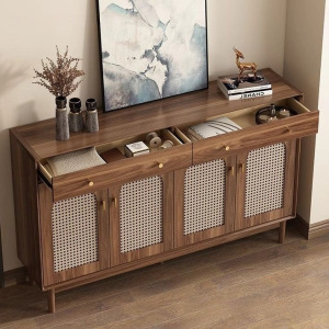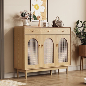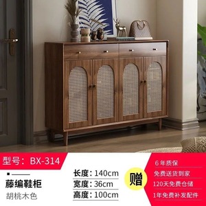 中古风藤编鞋柜实木家用门口玄关简约客厅入户透气收纳储物柜新款