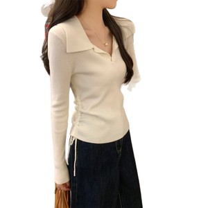 polo领针织衫女2025秋冬修身内搭感抽绳收腰设计感毛衣打底衫上衣