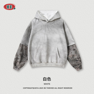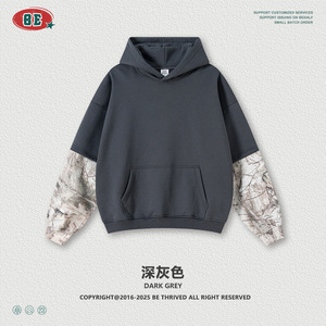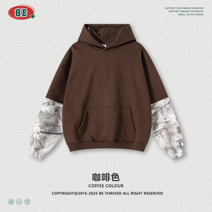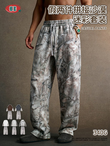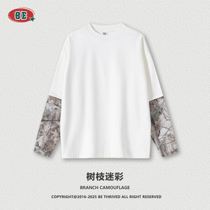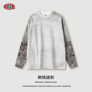 BE男装|2025秋季美式潮牌假两件迷彩套装卫衣T恤休闲长裤两件套男