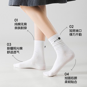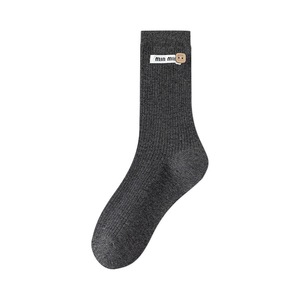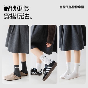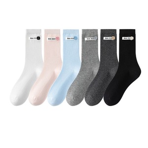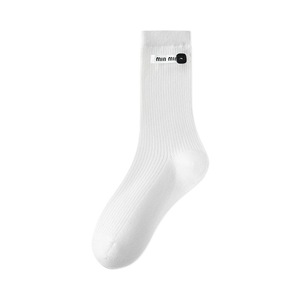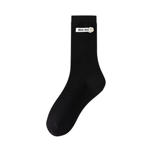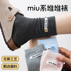 远润家批发袜子无骨女春秋堆堆袜miu系布标贝壳中筒袜吸汗ins风