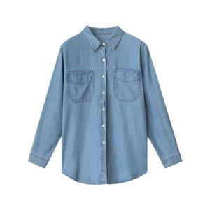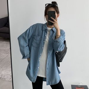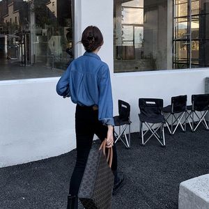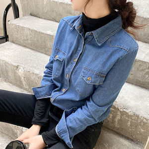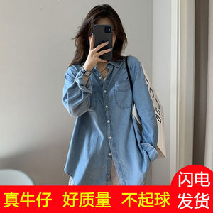 牛仔衬衫女春秋新款长袖宽松慵懒复古休闲衬衣中长款显瘦外套薄款