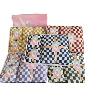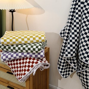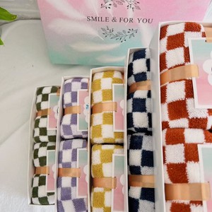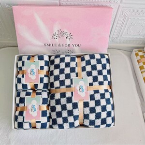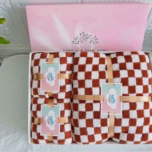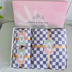 高品质高密珊瑚绒毛巾浴巾吸水亲肤柔软棋盘格套巾三件套礼盒批发