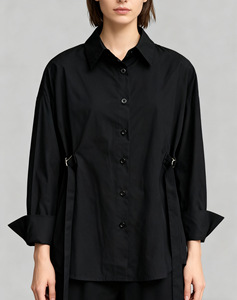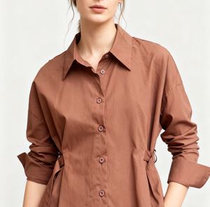欧美跨境新款气质显瘦修身一排扣长袖收腰衬衫俄罗斯