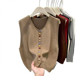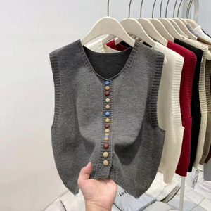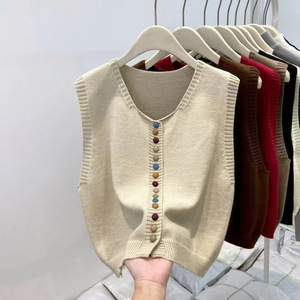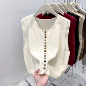 小彩扣软糯针织马甲女款2025新款早秋叠穿百搭无袖坎肩背心上衣女