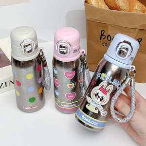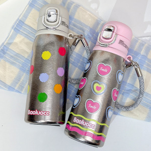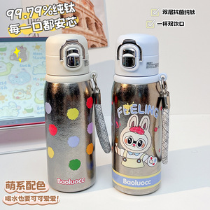 双层纯钛保温杯双饮吸管杯儿童水杯女生高颜值纯钛杯学生专用杯子