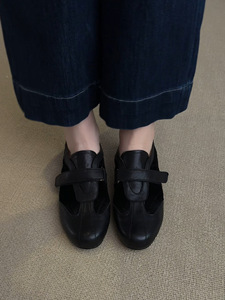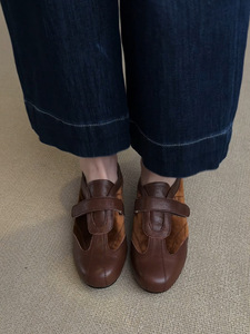 工厂直供 羊皮+金丝绒/4cm内增高魔术贴拼接圆头休闲单鞋