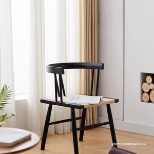 简约现代实木绳编椅复古新中式民宿北欧咖啡厅靠背椅子餐椅草座椅