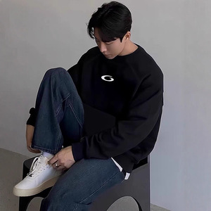 WE11DONETRACK潮牌WELLMIKI美式印花棉宽松情侣加绒圆领卫衣男女