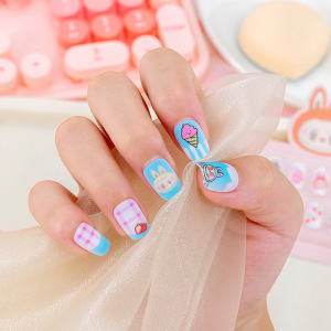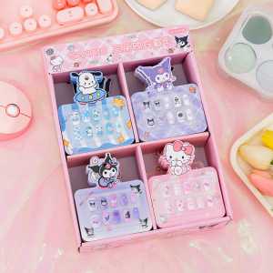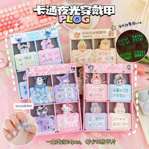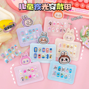 儿童卡通穿戴甲夜光背胶指甲贴套装可爱美甲装饰贴防水假指甲贴片
