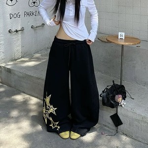 美式y2k慵懒风星星印花抽绳阔腿卫裤女休闲垂感百搭拖地长裤
