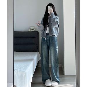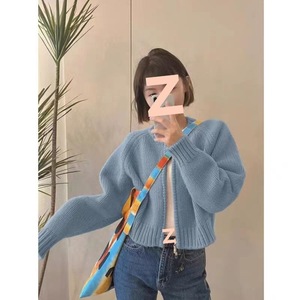 灰色短款毛衣外套女装秋冬2025新款宽松加厚拉链开衫长袖针织上衣