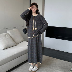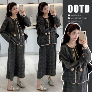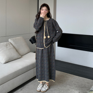 孕妇装2025秋季新款韩版时尚宽松花朵上衣+半身裙 孕妇套装