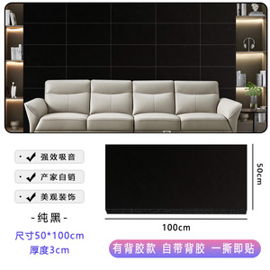 3cm 50x100cm黑色带背胶1片