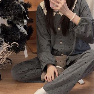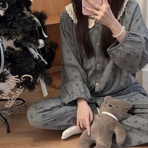 新款睡衣女春秋季甜美蕾丝花边百搭可爱宽松韩版设计感家居服套装