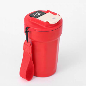 八角咖啡杯智能测温带温显316不锈钢广告保温杯带提绳创意礼品杯
