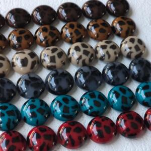 16mm狂野豹纹扁球馒头珠树脂贴片耳饰发夹抓夹手机壳diy饰品配件