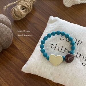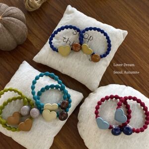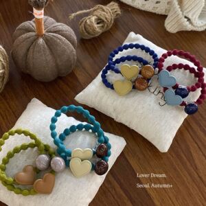 韩国秋冬新款珠子爱心藕节发圈 时尚高弹力皮筋头绳发绳百搭发饰