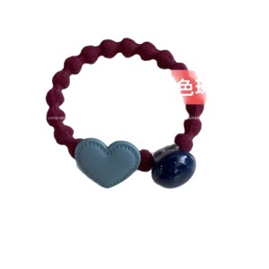 蓝色磨砂爱心 酒红色豆豆皮筋发圈