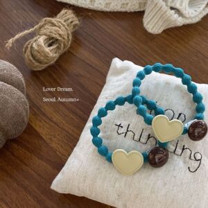 深咖色磨砂爱心 绿色豆豆皮筋发圈