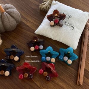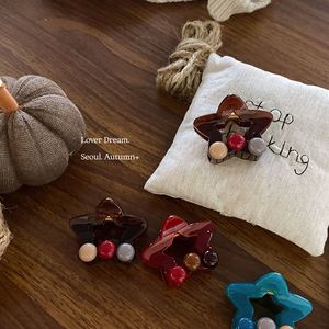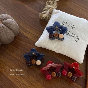 韩国秋冬新款彩色珠子五角星发夹 时尚可爱抓夹鲨鱼夹儿童发饰女