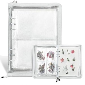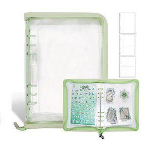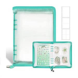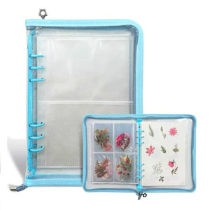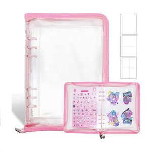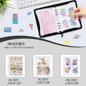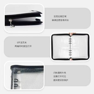 A5活页本闪粉外壳透明6孔卡册拉链活页本印logo图案贴纸整理收纳