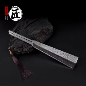 龙泉纯手工麒麟折扇全金属铬钢扇骨绢面十寸新中式国风国风工艺扇