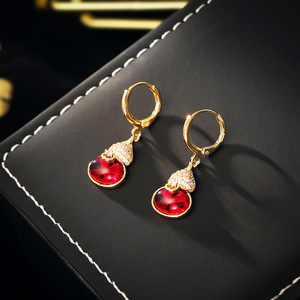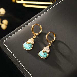 新中式百搭轻奢葫芦耳扣复古微镶锆石绿松石耳环精致百搭时尚耳饰