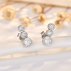 跨境热卖纯银针气泡圆锆耳钉耳环轻奢饰品耳饰配饰女外贸热销饰品