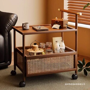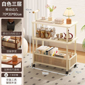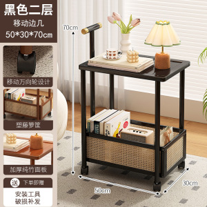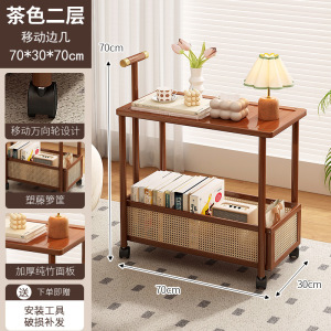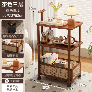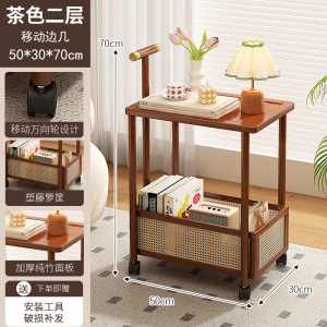 可移动沙发边几家用复古小茶几非实木小推车置物架客厅多层侧边柜