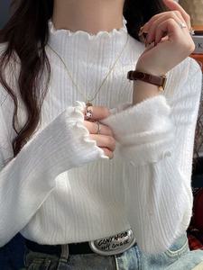 设计感半高领毛衣女秋冬加厚加绒一体绒打底衫内搭木耳边针织上衣