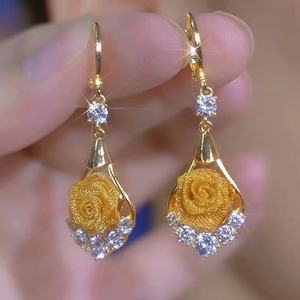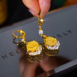 2025新款镶钻网纱玫瑰花耳环耳钩轻奢小众设计感气质百搭时尚耳饰