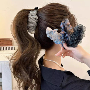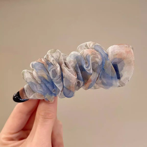 2025新款夏季气质网纱褶皱香蕉夹高级感盘发竖夹半扎发扭扭夹发饰