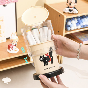 化妆刷收纳桶卧室书房家用带盖桌面防尘可爱收纳桶可升降笔筒桶