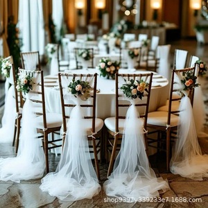 跨境纱幔婚庆椅背纱背景布瑞士婚礼装饰白纱吊顶欧根纱网纱布置