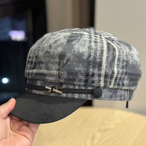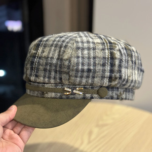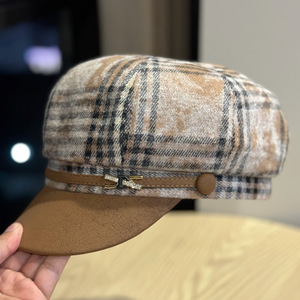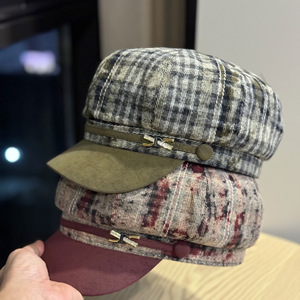 韩版复古拼色格纹八角帽子女秋冬显脸小百搭报童帽日系画家贝雷帽